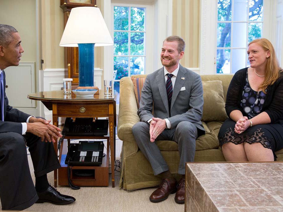 Earlier Tuesday, President Barack Obama met with Dr. Brantly and his wife, Amber, in the Oval Office.